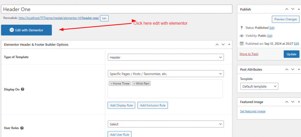 3. If you want to use a header on a specific page or post, choose the display condition “specific page.”